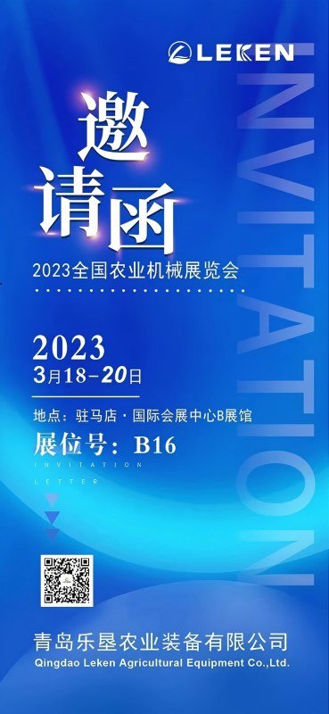 From March 18th to 20th, Leken brand 1BQ-4.0 power harrow and L7/3+1 D100, L8/4 D120, L8/4+1 D100, L9/S.4+1 D120, L9/S.5+1 D100 hydraulic flipping plow will meet you at booth B16 of Zhumadian International Convention and Exhibition Center. We sincerely invite you to come and look forward to meeting you.