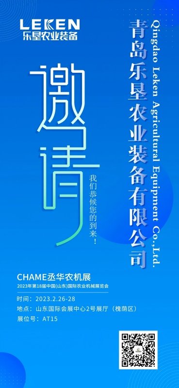 The 18th China (Shandong) International Agricultural Machinery Exhibition in 2023 will be held at the Shandong International Convention and Exhibition Center on February 26-28. Welcome to our booth.