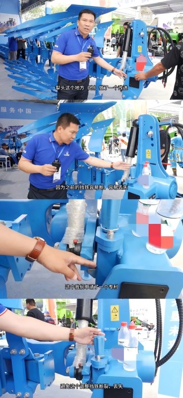 At this exhibition, Leken brought four hydraulic reversible ploughs with models L7/3+1 D100, L8/4+1 D100, L9/S.4+1 D120, and L9/S.5+1 D100, as well as a 1BQ-4.0 power harrow.